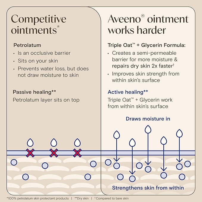 - Specially formulated with a soothing Triple Oat Complex--oat flour, oat oil, and oat extract--plus shea butter and glycerin, this ointment for dry skin locks in intense moisture and helps strengthen the skin's natural moisture barrier