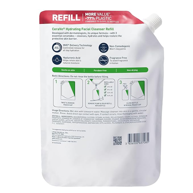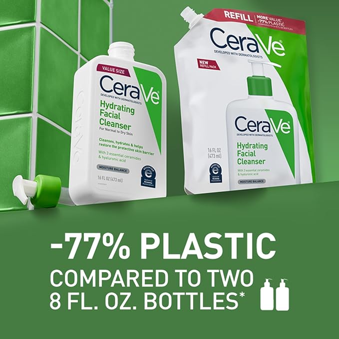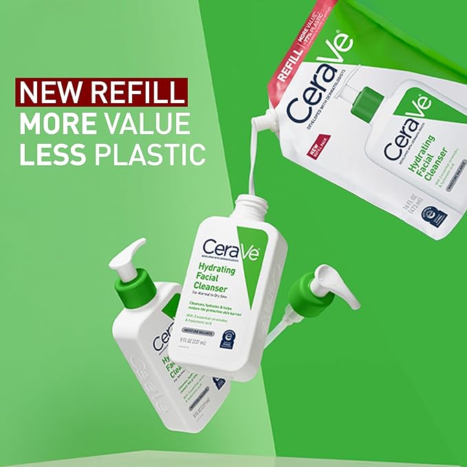 - [ HYDRATING FACE WASH ] Daily face wash with hyaluronic acid, ceramides, and glycerin to help hydrate skin without stripping moisture. Removes face makeup, dirt, and excess oil, provides 24-hour hydration and leaves a moisturized, non-greasy feel. Now available in a refill format.