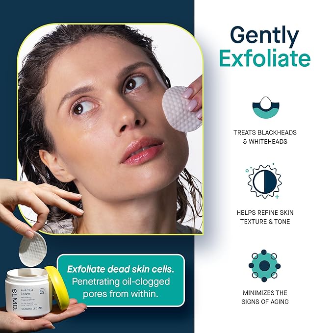 SLMD by Dr. Pimple Popper - AHA BHA Toner Pads Swipes, Salicylic Acid, Glycolic Acid & Lactic Acid - Daily Resurfacing Pads for Face & Body - Facial Exfoliating Resurface, Treat, and Prevent Acne