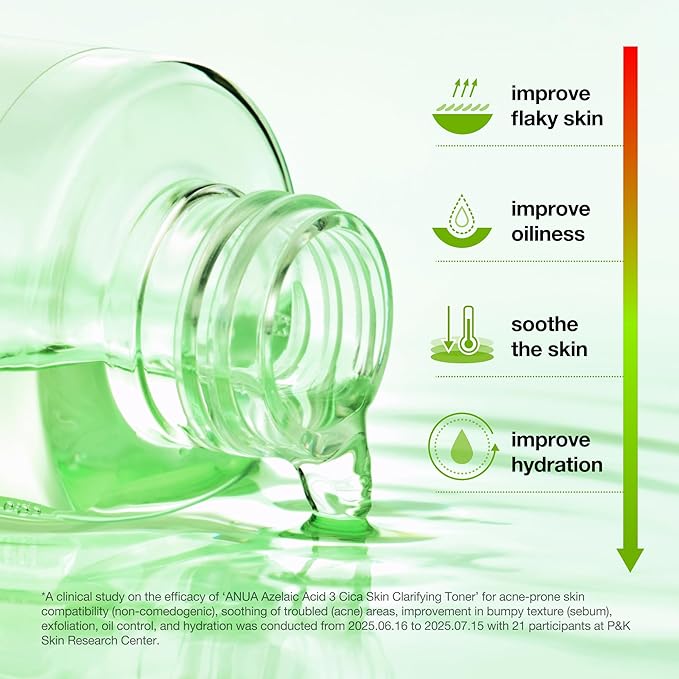 Anua Azelaic Acid 3 CICA Skin Claryfing Toner, Soothing & Clear Care, with Salicylic Acid & Azelaic Acid, Sebum & Spot Care, Suitable for Sensitive Skin, Korean Skin Care (250ml / 8.45 fl.oz.)