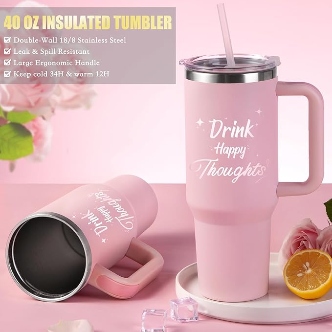 - 11 PCS Womens Christmas Gifts: Aeenr birthday gift baskets contain all carefully designed items that are the ultimate way to show your love for a birthday or anniversary, including 40 OZ insulated tumbler with handle, pink throw blanket, soft fuzzy socks, 1 silicone straw, 4oz rose scented candle, silk eye mask, floral scented bath soap, diamond handmade soap, bath bomb, dried flower gift card and large gift box
