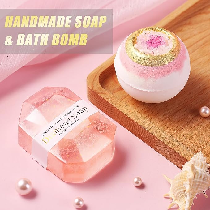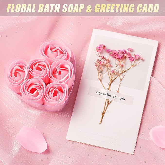 - Rose-Scented Relaxing Spa Gift Baskets: The 4oz rose-scented candle in our get well soon gift baskets is made of natural soy wax, can burn smokelessly & evenly for up to 20+ hours. It comes with a diamond handmade soap, floral bath soap, and an exquisite bath bomb, all releasing gorgeous & long-lasting rose fragrance, which will bring her a luxurious & sublime bubble bath experience, and help soothe her mind and relax her body. The perfect Gift idea for white elephant gifts