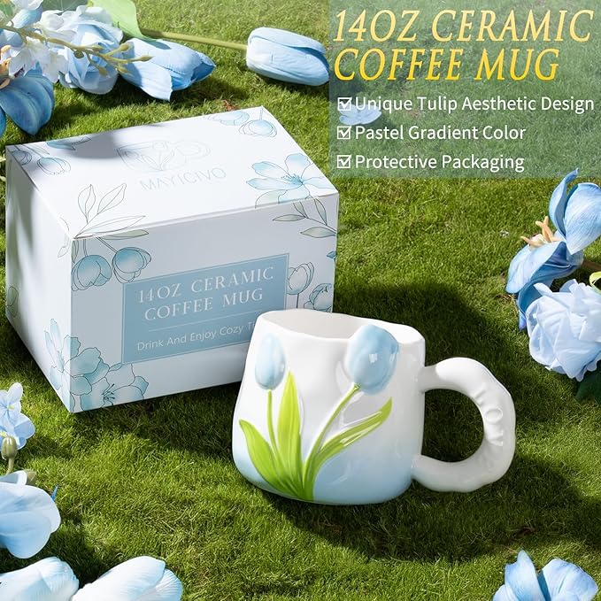 - 14OZ 3D SCULPTED TULIP CERAMIC MUG: Made from lead-free, heat-resistant ceramics, the elegant tulip ceramic mug in this mom birthday gifts for sister best friends wife her women is not easy to crack or fade, easy to clean and durable to use. Besides its attractive color and glaze, the 3D vivid tulip floral and "love" quote design add more charm and elegance. Presented in a beautiful box with protective bubble pads, it is a pretty thank you gifts thinking of you gifts friendship gifts for women
