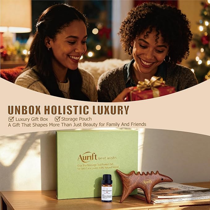 Body Gua Sha Tool Set with Rose Oil, Christmas Gifts for Adults Women, Wood Therapy Massage Tools for Body & Face, Lymphatic Drainage Massager for Relaxation, Deep Tissue Massage & Foot Care