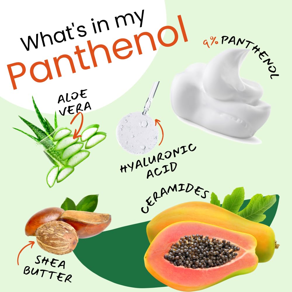 • πŸ’§ HYDRATION & SOOTHING REDNESS & ACNE: 9% Panthenol with Hyaluronic Acid - Immediately soothes irritated skin, intensive moisturizing for dehydrated, sensitive skin. Ideal for daily hydration and skin recovery as after sun lotion. Suitable for all skin types, including sensitive. Has a healing, cooling moisturizing effect on the skin after sun care.