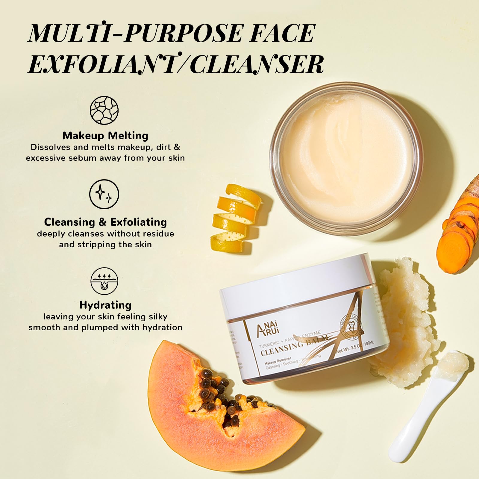 All-In-One Face Cleanser : Not Just a makeup cleansing balm!ANAI RUI papaya enzyme + turmeric makeup remover also a multi-function face cleanser to exfoliating while providing nourish to skin. Infused with turmeric makes this oil cleansing balm has antioxidant properties, helps birng youthful and healthy skin to you.