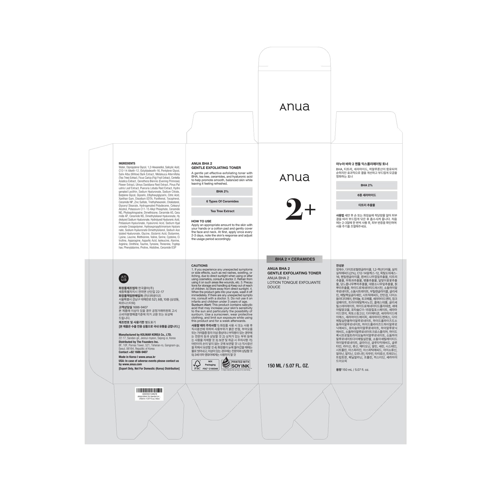 ANUA BHA 2% Gentle Exfoliating Toner, Mild Facial Exfoliant, Salicylic Acid for Pores and Sebum, Teatree Extract, Hyaluronic Acid, Ceramides (150ml / 5.07 fl.oz.)