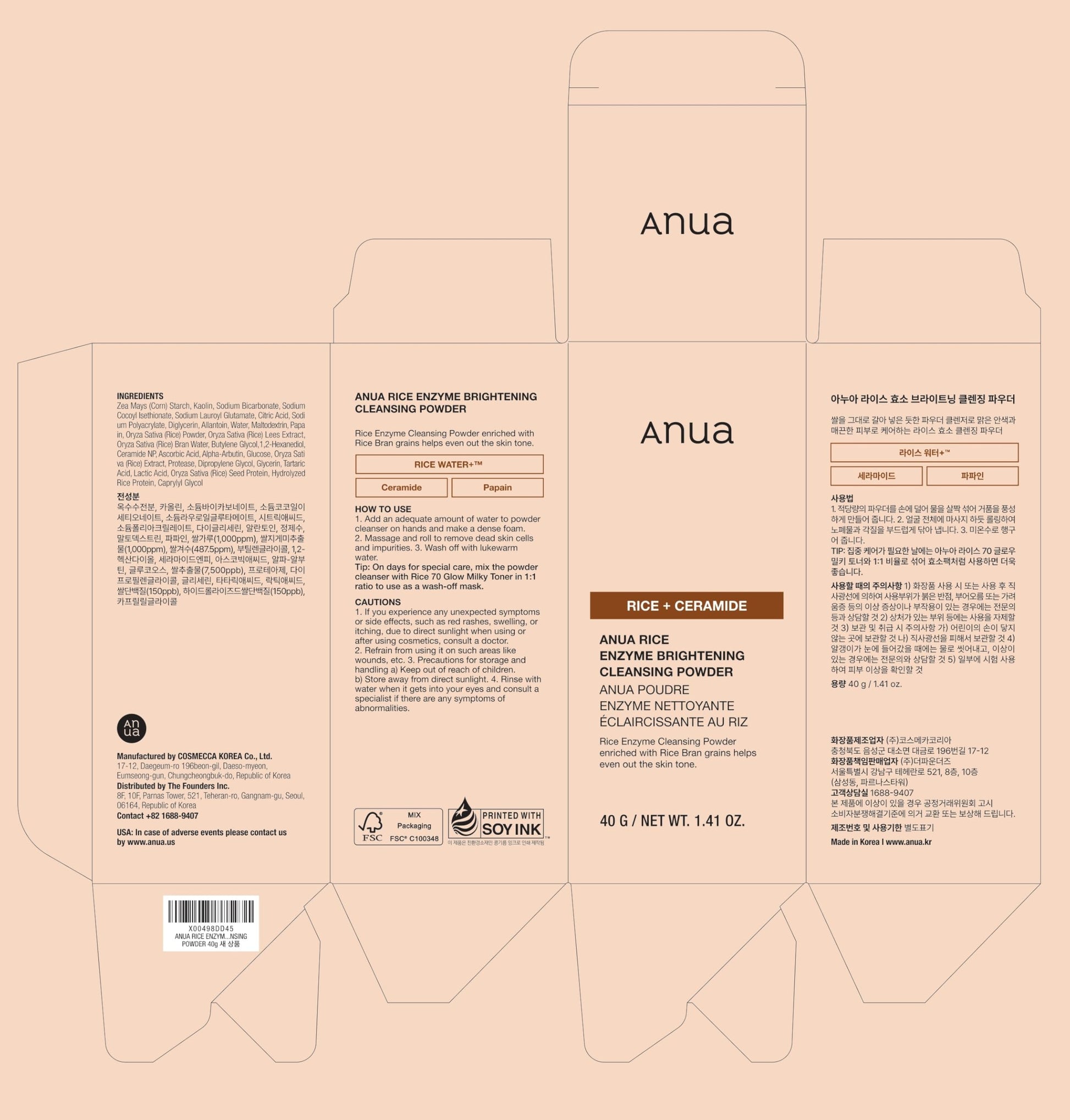 ANUA RICE ENZYME BRIGHTENING CLEANSING POWDER, Rice Mask, Ceramide, Gentle Face Wash for Brightening, Radiant Skin, Facial Cleanser for Dry Skin, Korean Skincare, Fragrance Free, 40g/1.41fl.oz.