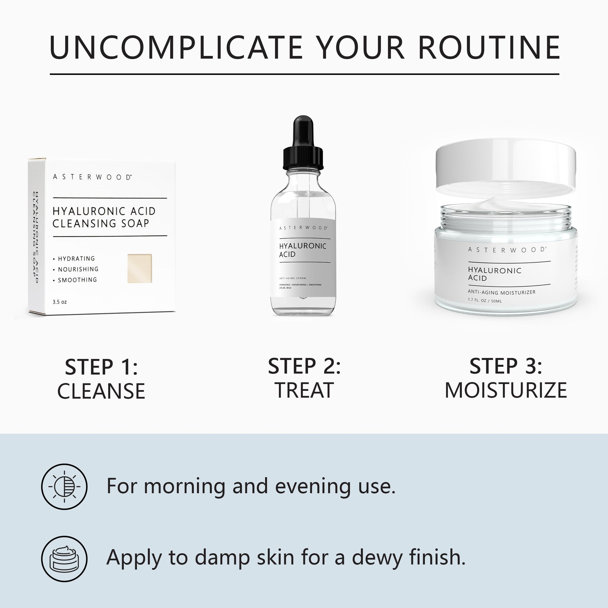 Asterwood Hyaluronic Acid Moisturizer - Anti-Aging, Wrinkle Reducing, Moisturizing, Hydrating - Fragrance-Free, Non-Comedogenic - 1.7 Fl Oz