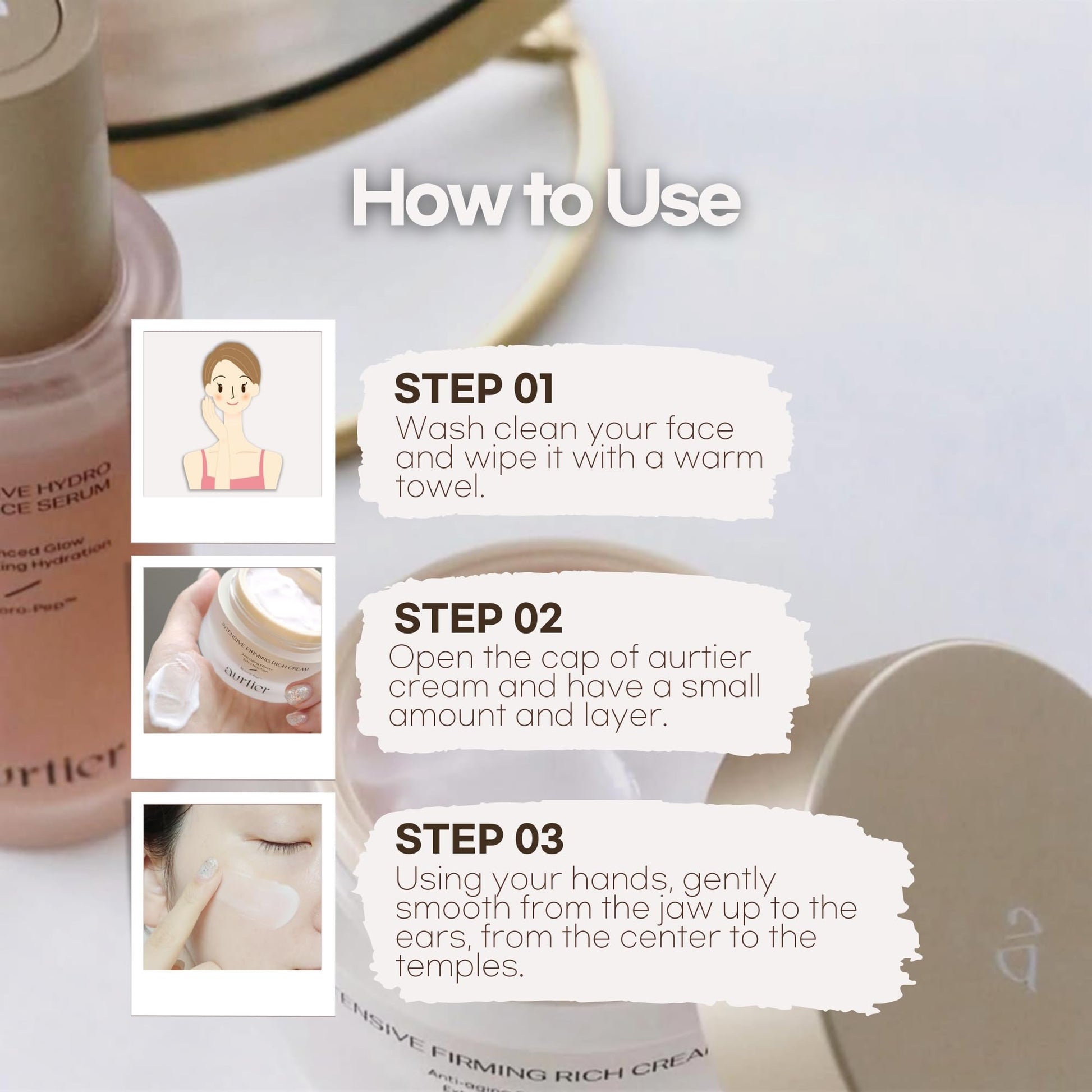 aurtier Intensive Firming Rich Cream, Anti-Aging Moisturizer with Collagen Peptides EGF Hyaluronic Acid for Wrinkle Smooths, Firming, Lifting & Deep Hydration 1.69 Oz