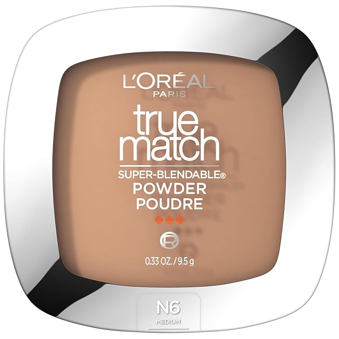 L'Oreal Paris True Match Super Blendable Oil Free Powder Foundation, N6 Medium, 0.33 oz, Packaging May Vary