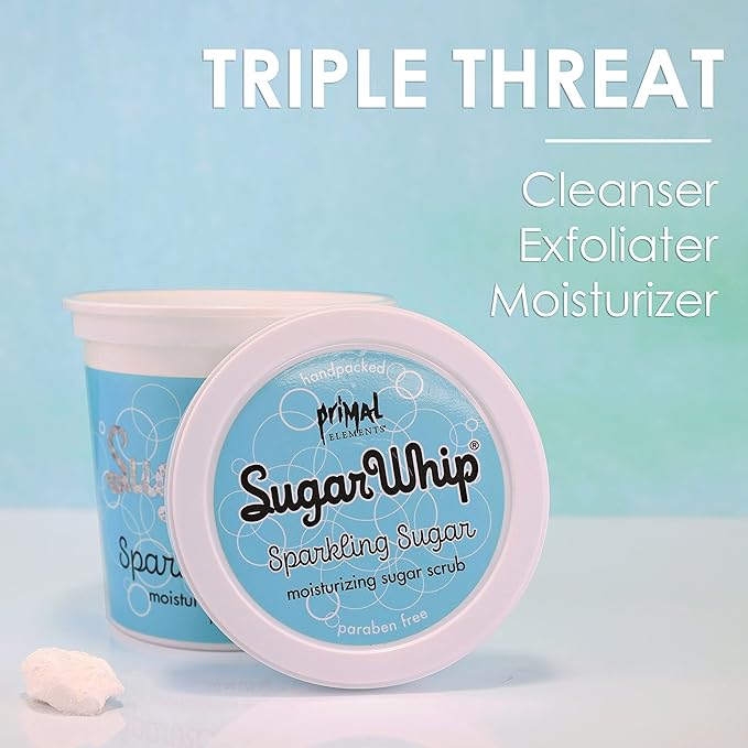 - Cleanse, Scrub and Moisturize: Sugar Whip is a triple threat as it scrubs, cleans and moisturizes the skin. Pure cane sugar pull moisture from the environment to nourish and pamper the skin