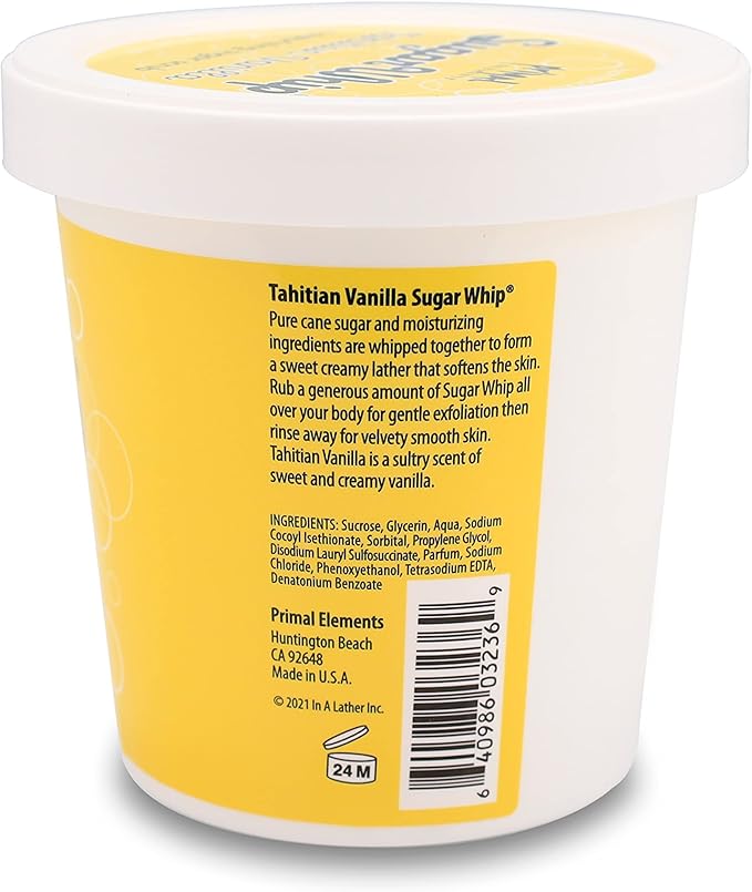 Primal Elements Sugar Scrub, Exfoliating Sugar Whip, Face and Body Cleanser, Moisturizer, Tahitian Vanilla, 10 oz Package