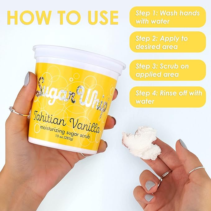 - Cleanse, Scrub and Moisturize: Sugar Whip is a triple threat as it scrubs, cleans and moisturizes the skin. Pure cane sugar pull moisture from the environment to nourish and pamper the skin