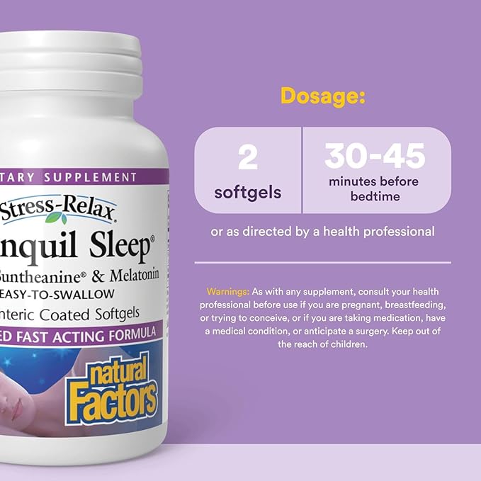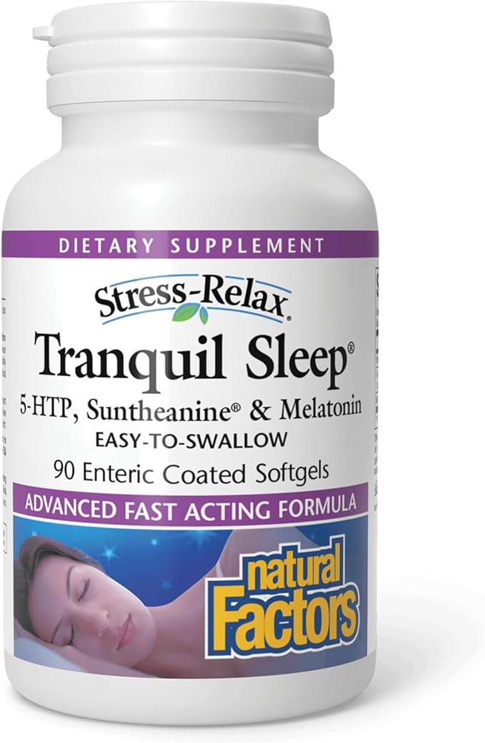 Stress-Relax Tranquil Sleep by Natural Factors, Sleep Aid with Suntheanine L-Theanine, 5-HTP, Melatonin, 90 Softgels