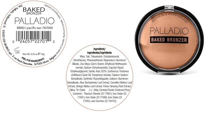 Palladio Baked Bronzer, Highly Pigmented and Easy to Blend, Shimmery Bronzed Glow, Use Dry or Wet, Lasts all day long, Provides Rich Tanning Color Finish, Powder Compact, Pacific Tan