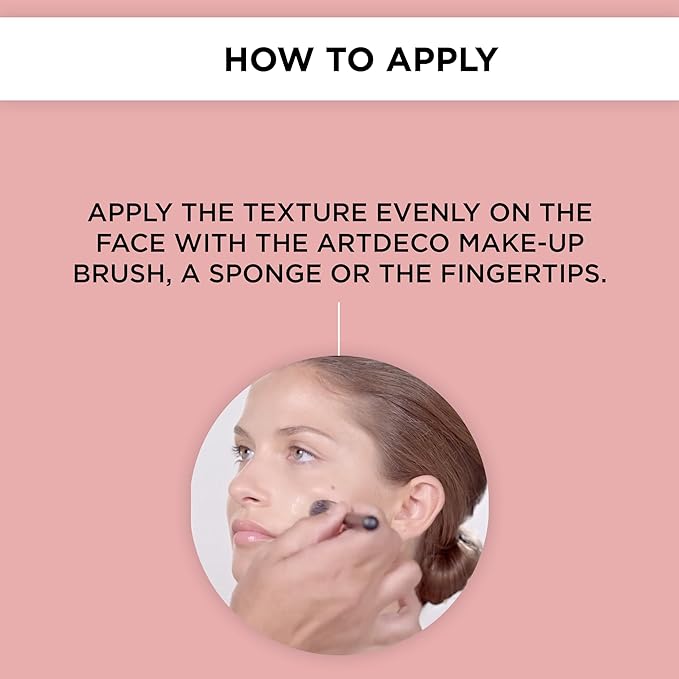 • APPLICATION: After applying day cream, use an ARTDECO makeup brush, sponge, or your fingertips to apply an even layer of the foundation to the face. Please note: The UV filters in this product do not provide sufficient sun protection. Please use additional protection in strong sunlight.