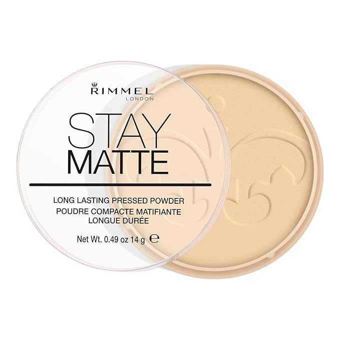 Rimmel London Stay Matte - 001 Transparent - Pressed Powder, Lightweight, High Coverage, Shine Control, 0.49oz