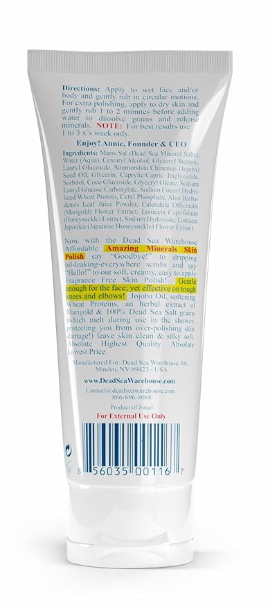- Reveals Silky-Smooth Skin: Dead sea skin polish body exfoliator gently exfoliates with 100% Dead Sea salt grains that dissolve during use w/ water, preventing over-polishing and leaving skin soft and radiant.