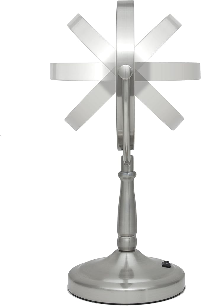 - Dual-sided makeup mirror with 10x and 1x magnification and satin nickel finish swivels 360 degrees