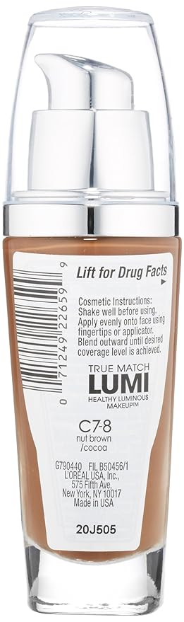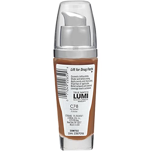 L'Oreal Paris True Match Lumi Healthy Luminous Makeup, C7-8 Nut Brown Cocoa, 1 fl; oz.