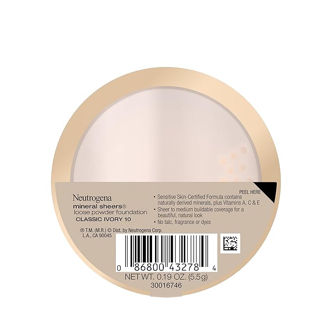 - Neutrogena Mineral Sheers Lightweight Loose Powder Makeup Foundation in shade Classic Ivory 10 helps to even and enhance skin's clarity, tone, and texture