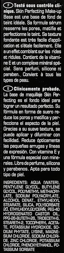 - HIGHLIGHTS: The Skin Perfecting Make-Up Base has an ultra-light, silky texture that smooths easily over the skin. It offers the perfect velvety-smooth base for makeup, making it easier to apply and last longer on the skin. The primer is enriched with vitamin E and a special mineral complex known for its nourishing properties.