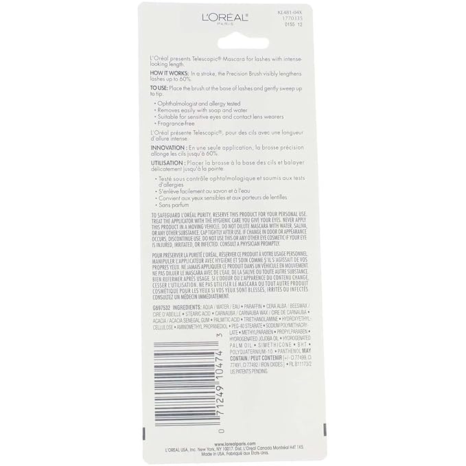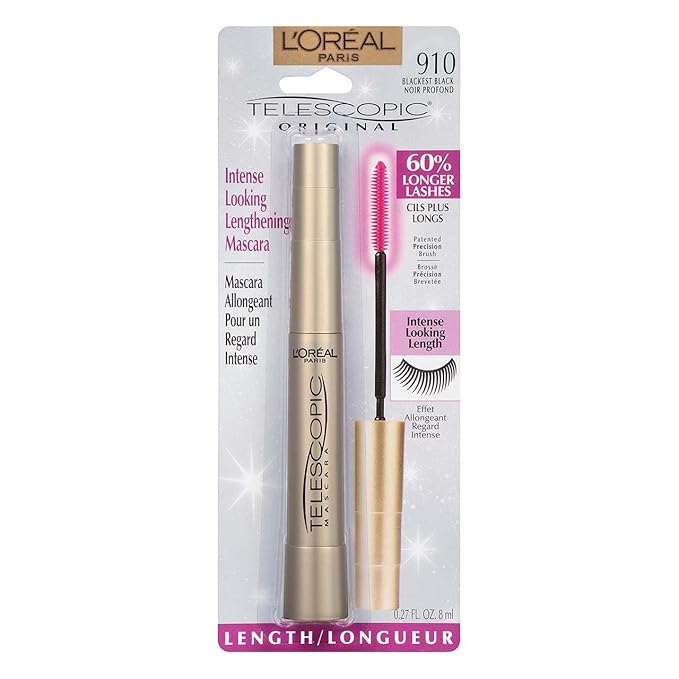 L’Oreal Paris Telescopic Original Mascara, 910 Blackest Black (Pack of 2)