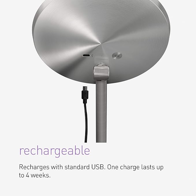 - RECHARGEABLE - One charge lasts up to 5 weeks.