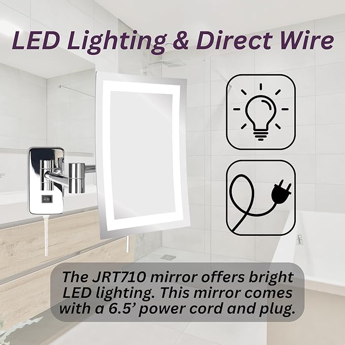 JERDON Wall Mount Makeup Mirror with 5X Magnification - 8.75” x 6.5” Rectangular Design Extends 15.5” from The Wall – Chrome Finish – Power Cord and Plug – Model JRT710CL