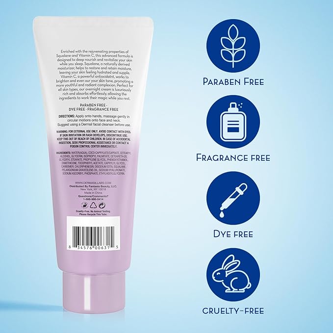 Dermasil Night Cream 3-Pack β Anti-Aging Face Moisturizer with Squalane, Hyaluronic Acid, Vitamin C, and Vitamin E, 2 Oz Ea