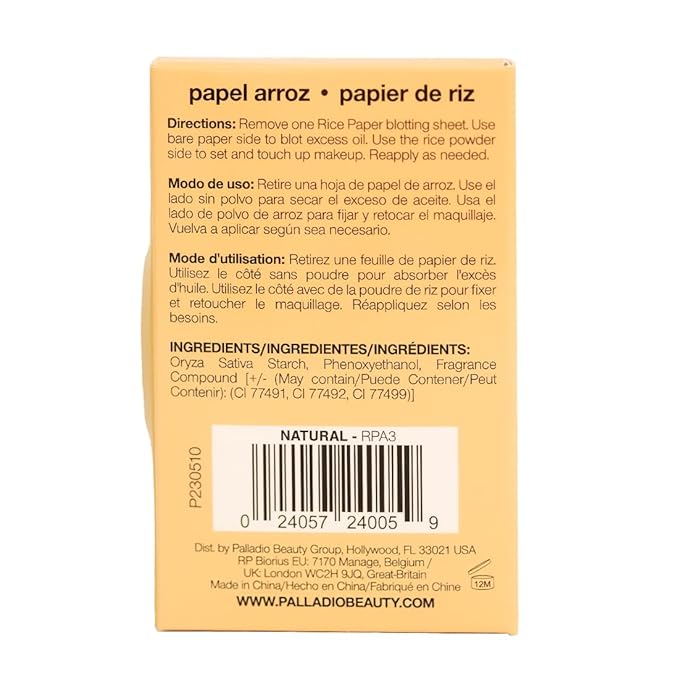 - RICE PAPER BLOTTING TISSUES: Made from natural rice, Palladio's rice paper sheets are great for absorbing excess oil & keeping your face & makeup looking fresh & clean all dayβat home or traveling. Comes in compact packaging & in multiple skin tones.