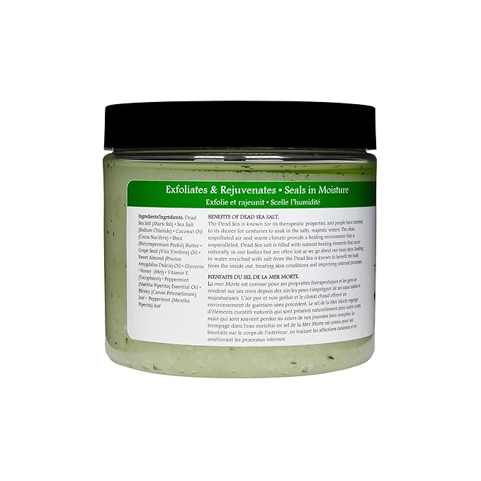 Premium Taza Peppermint Dead Sea Salt Scrub, 473 ml 24 oz (670 g) Exfoliates Your Skin Leaving it Soft and Hydrated Contains: Coconut Oil, Shea Butter, Grapeseed Oil, Sweet Almond Oil, 26 Minerals