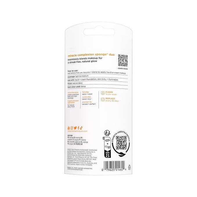 - Includes: (2) Real Techniques Miracle Complexion Sponges to seamlessly bounce and blend makeup for a streak-free, natural, dewy glow. Pack size for easy refills- donβt forget to replace your sponge every 30 days. Never run out by using Subscribe & Save