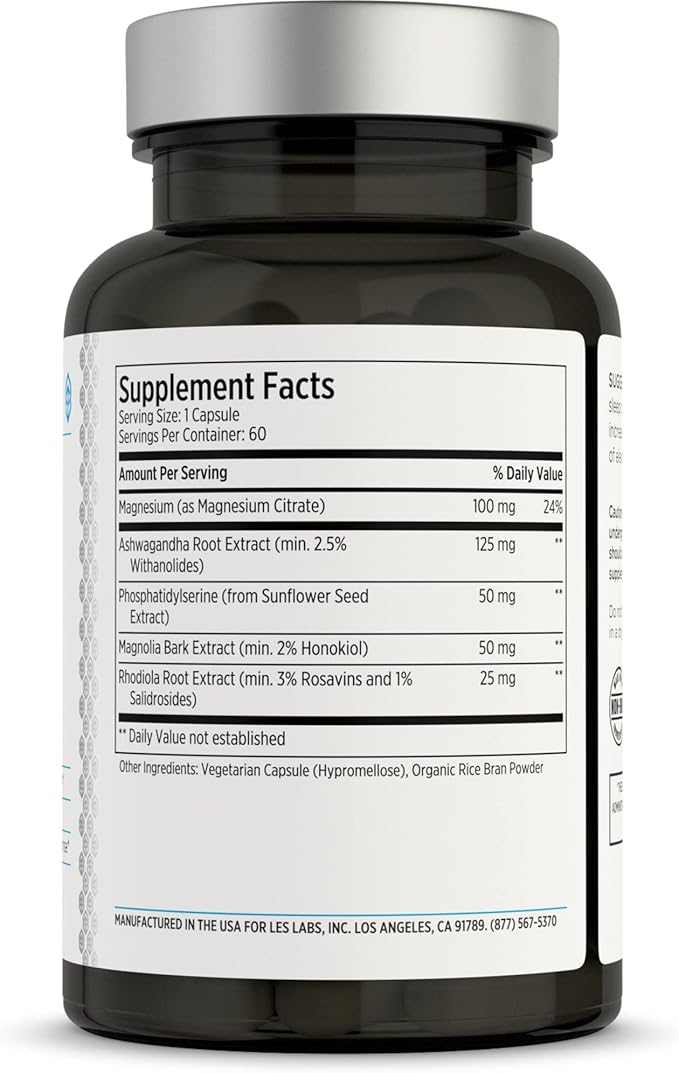 LES Labs Cortisol Health β Stress Relief, Balanced Cortisol Response, Relaxation & Deep Sleep β Phosphatidylserine, Magnesium, Magnolia Bark, Rhodiola Rosea & Ashwagandha β Non-GMO β 60 Capsules