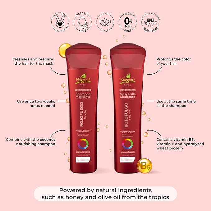 Naissant Deep Red Hair Toning Mask | Color Depositing | Moisturizes & Refreshes & Neutralizes Brassy Tones | Paraben, Ammonia & Sulfate Free | Pro-Vitamin B5, Olive Oil & Honey (Rojo Fuego) 10.1 Fl Oz