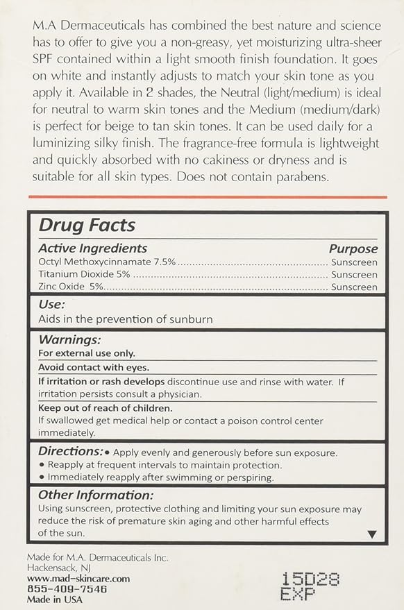 • Non- greasy, moisturizing ultra-sheer smooth foundation goes on white and instantly adjusts to match your skin tone as you apply it.