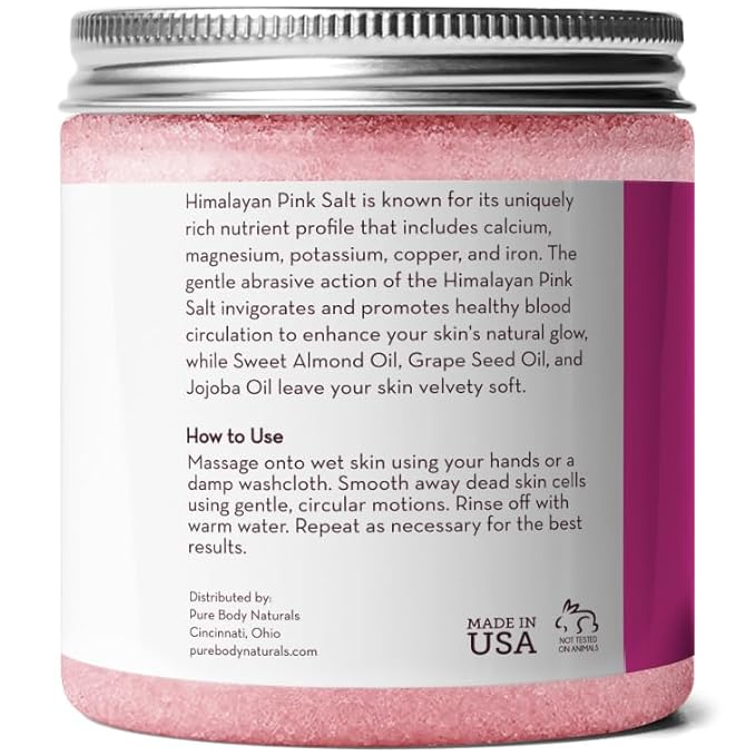 - ✅ 12 oz jar of Himalayan Salt Scrub for natural exfoliation, cleansing and moisturizing