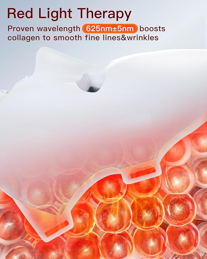 - Red Light Therapy & Results: Red light therapy mask for face at 625nm±5nm penetrates deeper layers of the skin to stimulate natural cell repair and collagen production.Users report noticeable transformations where forehead creases are softened and nasolabial fold appears less pronounced; additionally, overall skin complexion becomes more even-toned, resulting in a radiant appearance.