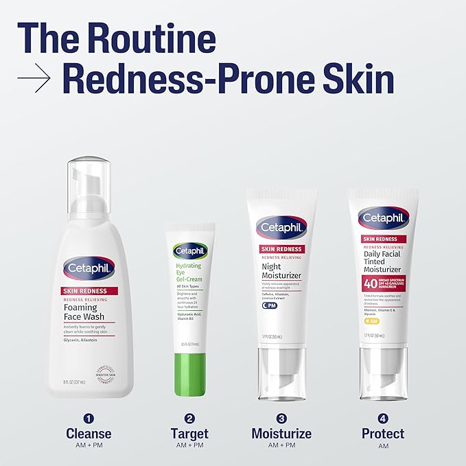 - CETAPHIL REDNESS RELIEVING FOAMING FACE WASH: Gently cleanses and soothes redness prone skin