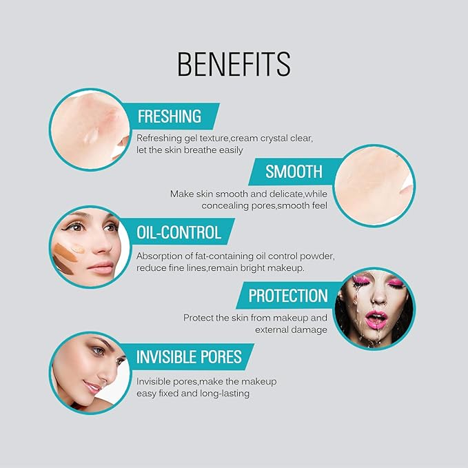 - Product Benefits : Fresh gel texture let your skin breathe freely , no burden at all. Contain oil-control powder which can absorb the excess of sebum and prepare the skin to help makeup stay for a long time. Fresh gel texture let your skin breathe freely , no burden at all. Contain oil-control powder which can absorb the excess of sebum and prepare the skin to help makeup stay for a long time.