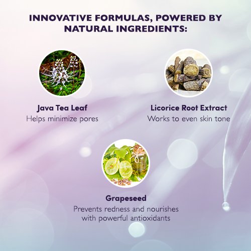 - Java Tea Leaf, Licorice Root Extract and Grapeseed nourish skin with powerful antioxidants