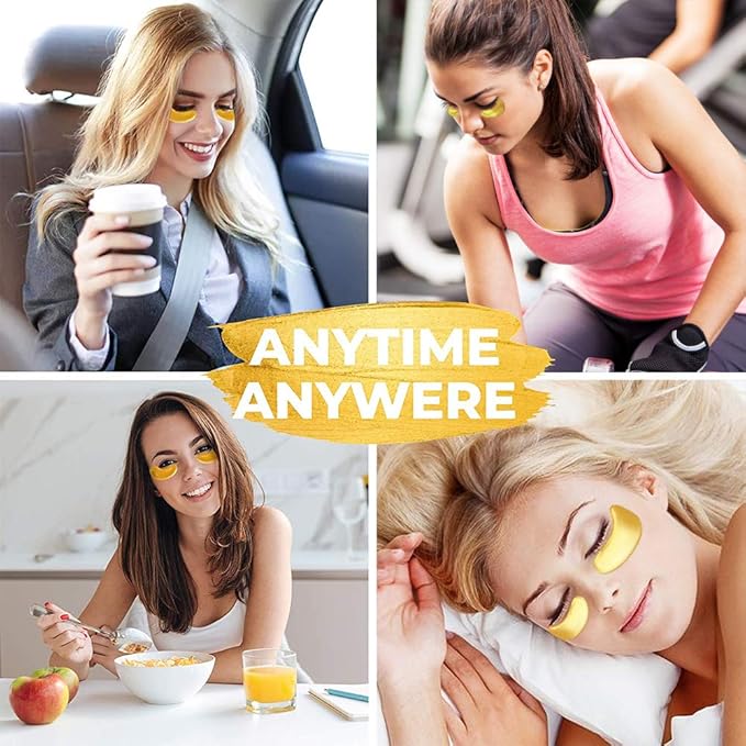 24K Gold Powder Gel Collagen Eye Masks Sheet Patch, Remove Bags,Dark Circles &Puffiness,Reduce Wrinkle,Moisturising,Hydrating for Blackheads (10 Pairs)