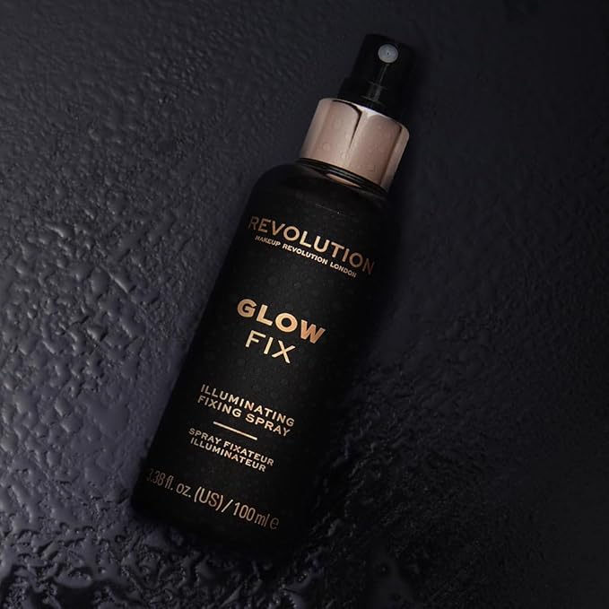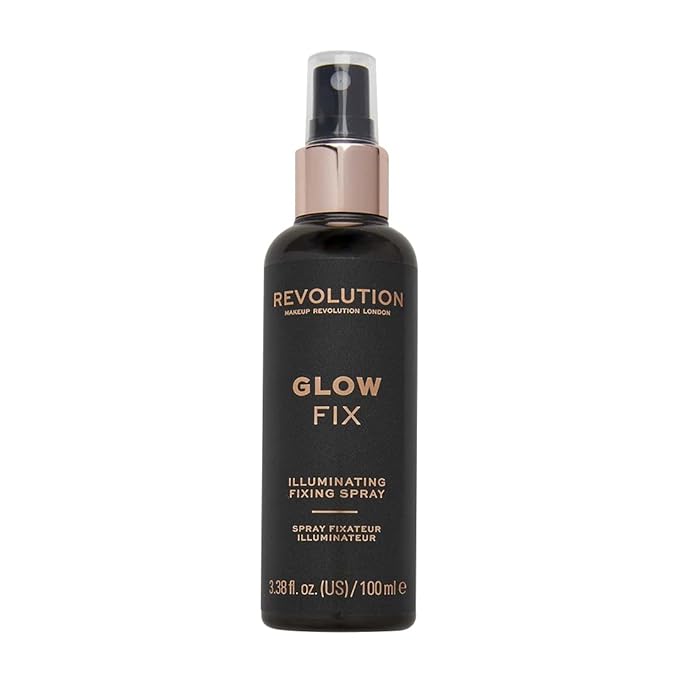Makeup Revolution, Glow Fix Illuminating Fixing Spray, Glow Finish, Hydrating & Brightening Setting Spray for Face, Vegan & Cruelty-Free, 3.38fl.oz