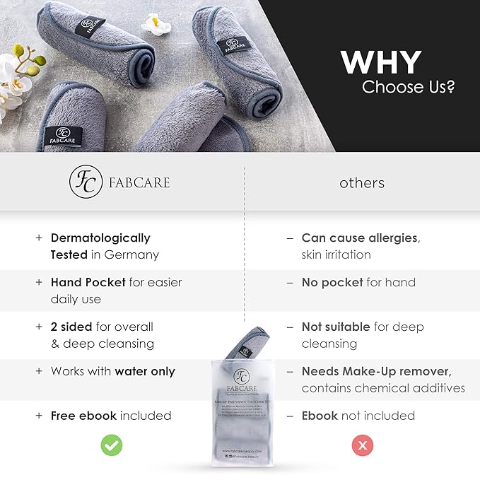 - CLEANSES THE SKIN - FABCARE's Make Up Remover Cloth gently removes impurities, oil, and dead skin cells. The optimal prevention against pimples and blackheads.