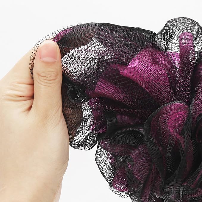 - Premium Sponge - Luxury black bath and shower sponge mesh puff with gentle body exfoliating and scrubbing power remove dead skin cells