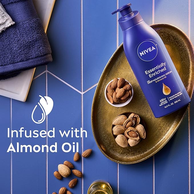 NIVEA Essentially Enriched Body Lotion for Very Dry Skin with Hyaluronic Acid, Almond Oil and Deep Nourishing Serum, 72-Hour Body Moisturizer, 16.9 Fl Oz Pump Bottle, Pack of 2