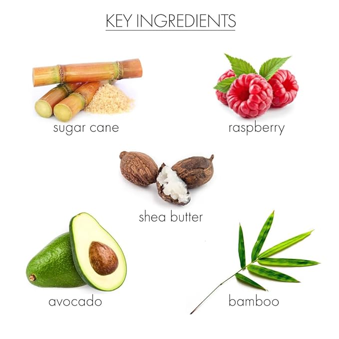 - Enriched With Botanical Ingredients: Our brown sugar scrubs are infused with skin-loving ingredients to moisturize your body while gently remove dead skin. Brown sugar, raspberry seed, and bamboo powder exfoliates; shea butter, raspberry butter, and aloe moisturizes; and vitamin E extract and avocado oil renews.