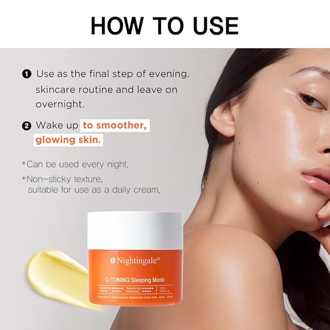 Nightingale C Toning Sleeping Mask, Overnight face Mask For Face, Vitamin C + Niacinamide +AHA, BHA, PHA+ Hyaluronic Acid, Moisturizing & Visibly Brighten, Korean Skin Care