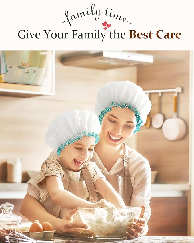 • 🎈Cute Look-- A shower cap with simple elegant design respectively in white and blue, good choice for showering, cooking, hair mask treatments and SPA